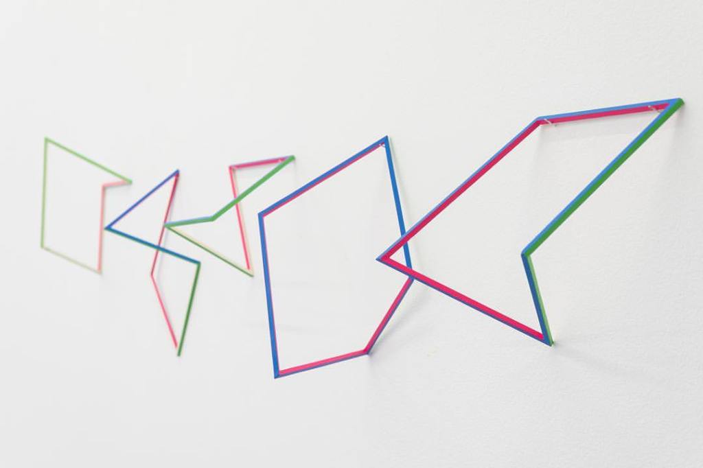 These modules were fabricated using the scales of her hand (palm width, finger length), the shape is given by using these lengths and angles and color rhythms to obtain a closed shape, an attempt to create a sort of alphabet of its own. Following this operation, the different variations and position of these pieces and their different combinations attempt to become a sort of visual vocabulary.