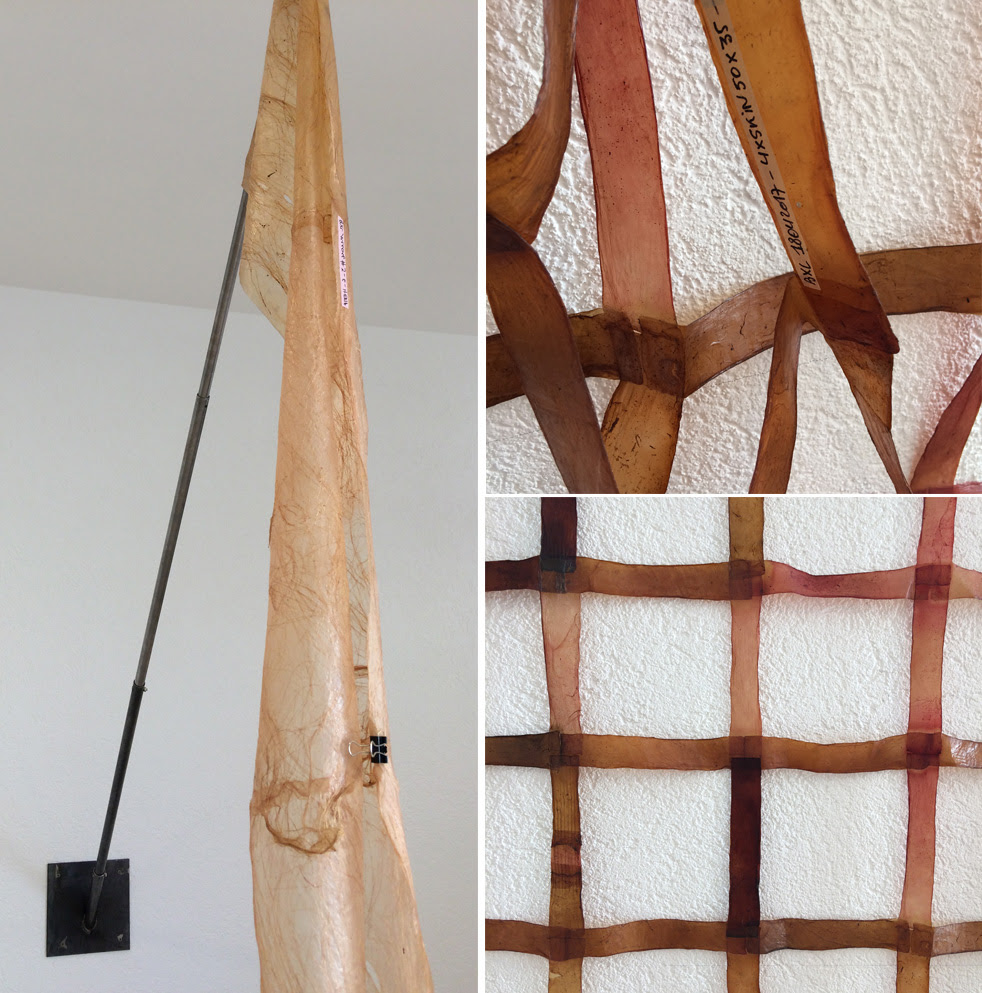 The exhibition Flags, Banners and Sensorial Skin by curator Darko Fritz reveals a part of AnneMarie Maes’ long-term research towards the ultimate Intelligent Guerilla Beehive, a mobile shelter for homeless honeybees. This radically new device tackles a domain where human and non-human actors collaborate to maintain the resilience of an ecosystem in decline. The project unfolds on the interstices of art and science, with a focus on issues as sustainability, biodiversity and smart materials research.