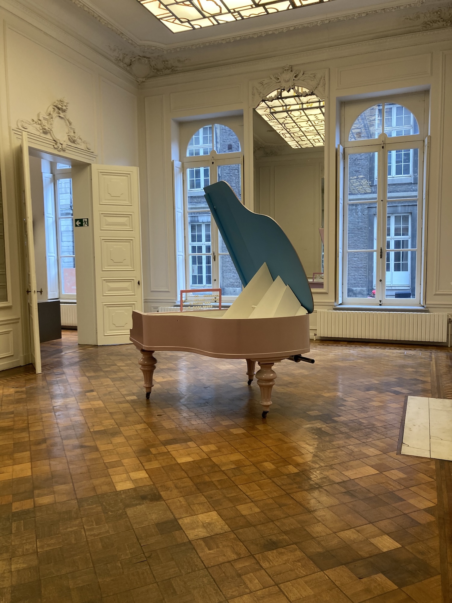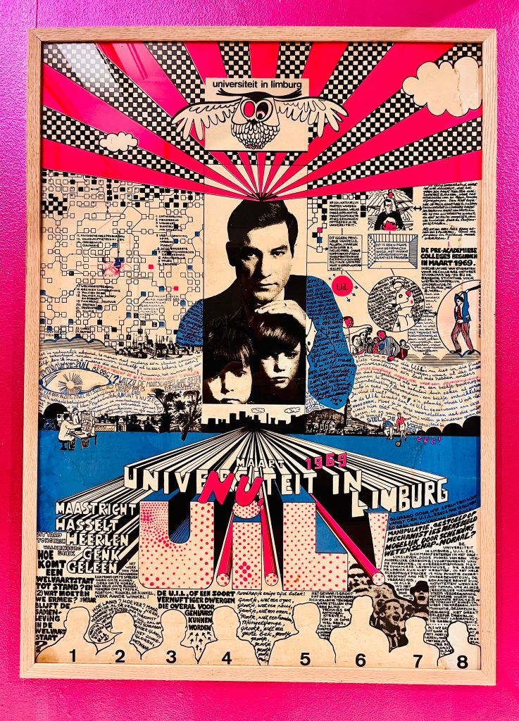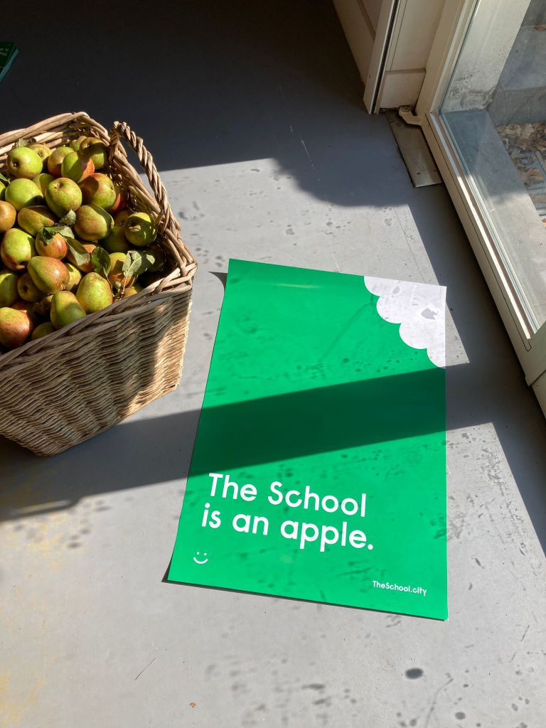 The show around this group consisting of Jos Jans, Dré Sprankenis, Hélène Keil, Hugo Duchateau, Jan Withofs and their teacher Vincent Van den Meersch, is the result of a fantastic collaboration with scenographer Jo Klaps, graphic designer Geoffrey Brusatto and the team of Het Stadsmus (City Museum). During the very well attended opening The School – Pablo Hannon and Stef Lemmens presented the performance The School is an Apple.