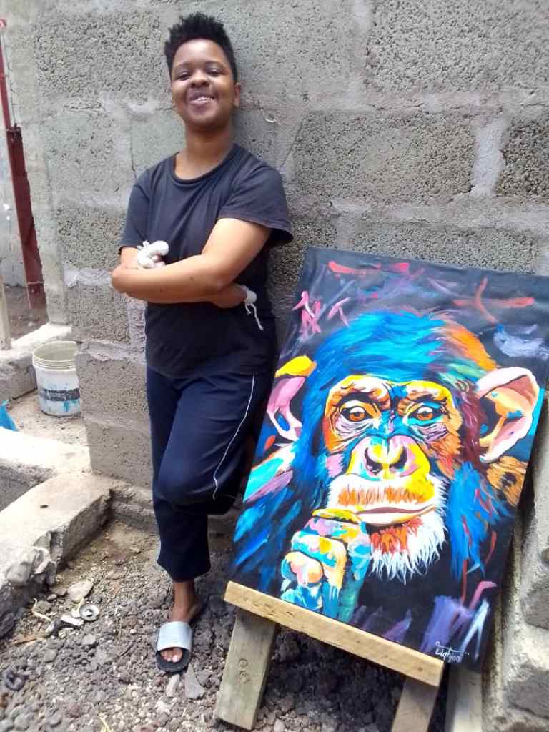 Part of the project Covers for the World is the decolonizing reinterpretation of Picasso’s Demoiselles d’Avignon. Pierre Mertens made an earlier version for the Biennial of East Africa with artists based in Europe. But for the version in Moshi Pierre thought it was important to fully hand over to local Tanzanian artists. One of the these is Lightness Jonas who, as a person with disabilities, has taken to painting with her feet.