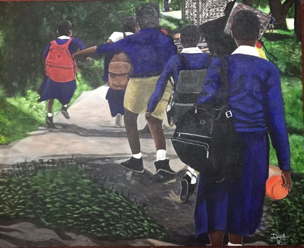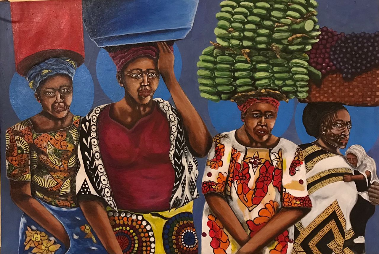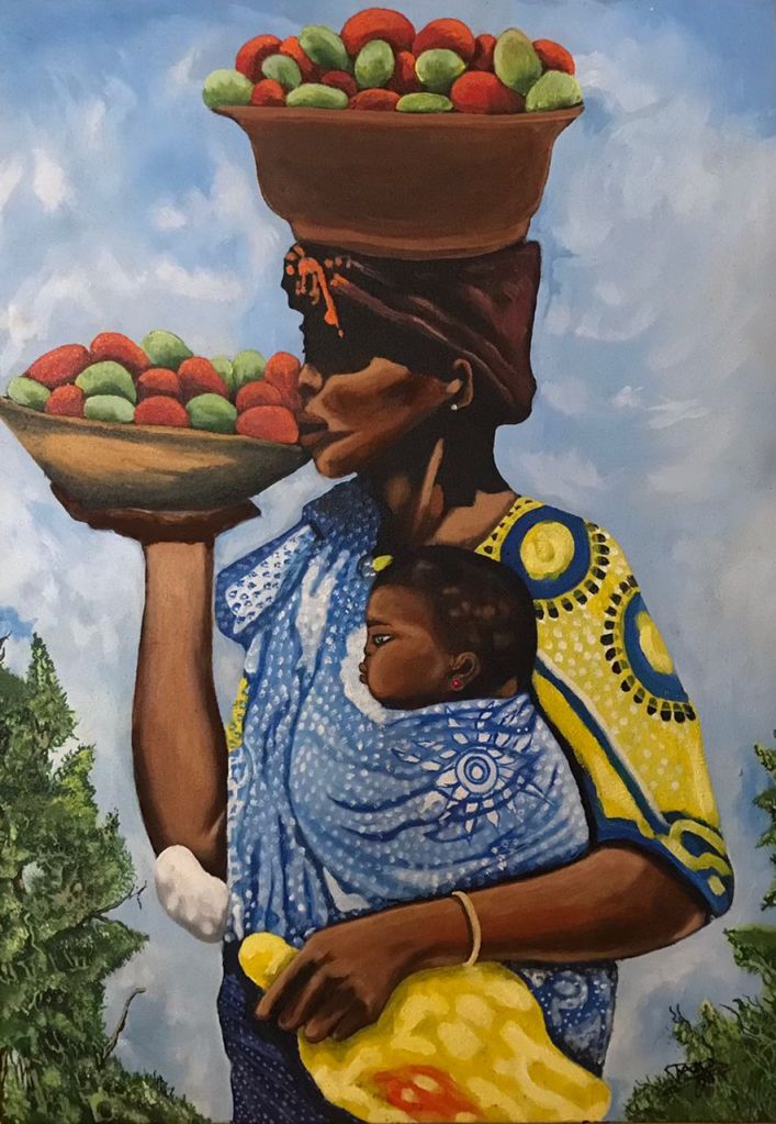 The reason I’m focusing on painting women and children is that I was one of those children that was raised by my mother while my father is away. I like to show the community the challenges which women and children are faced with through my artwork. There are many challenges in society which don’t seem to be addressed, or that are talked about.