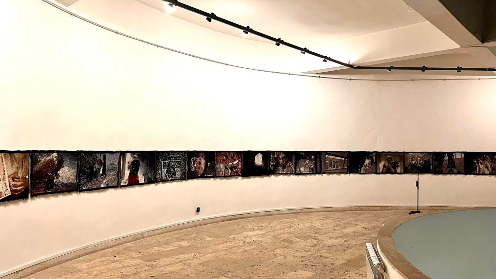 Alexandra Dementieva, above: Sleeper, 2018; Breathless, 2012; below: left and right – Their Portraits, 2023; center -Twin Depths, 2018
