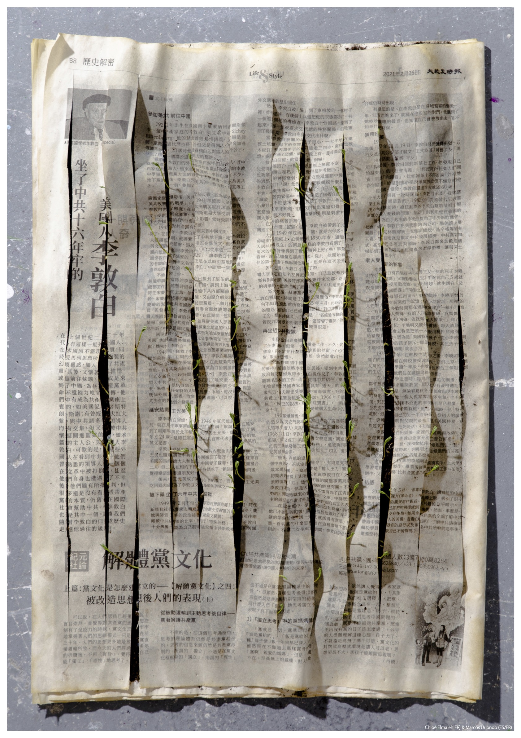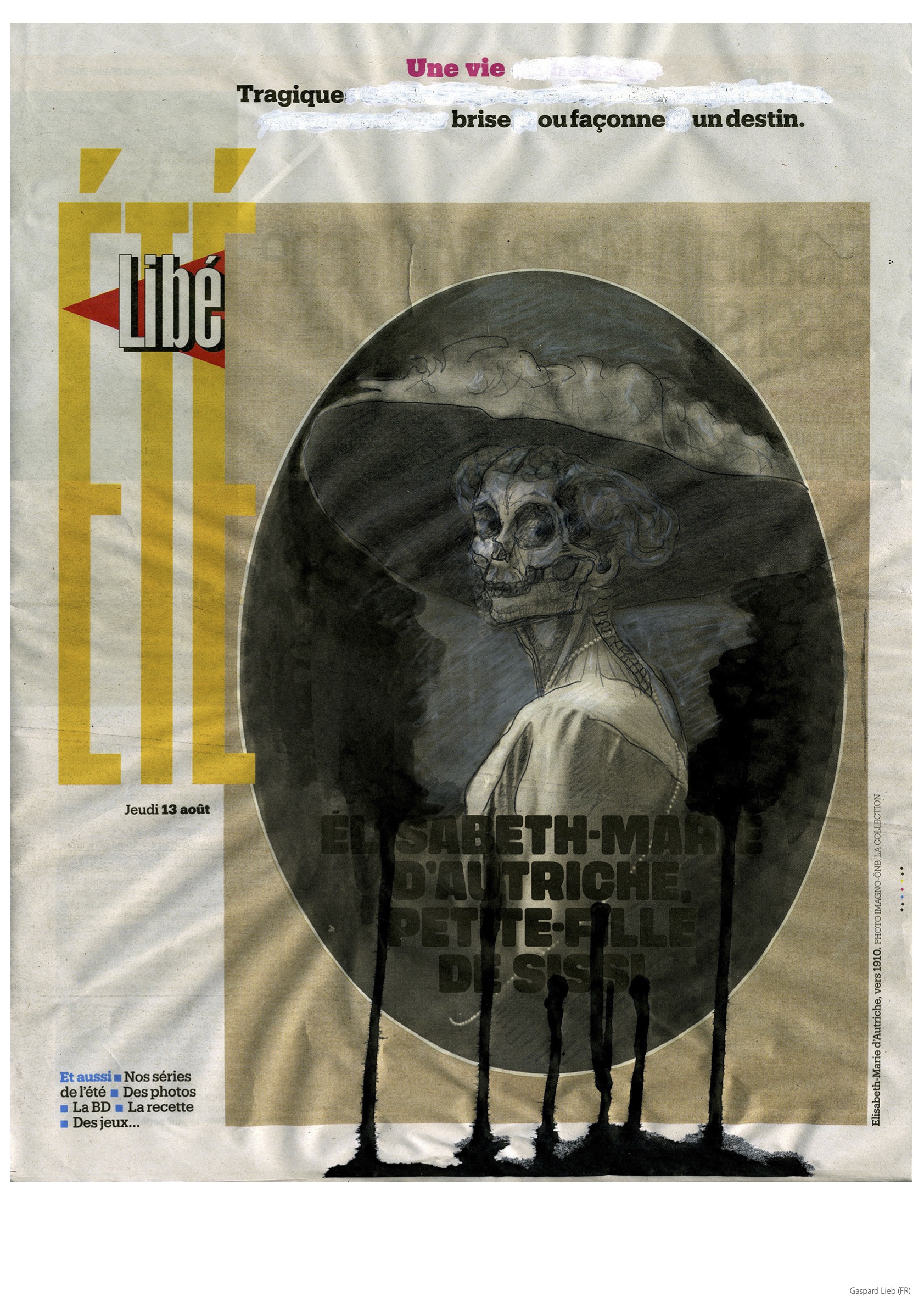 Named after Ravel’s musical composition for its accelerating movement and alluding to a traveling caravan through the desert, the project was initiated in 2010 by the artists Frank JMA Castelyns, Willo Gonnissen, Pierre Mertens and Mulugeta Tafesse as an answer to an ever more global art world. The principles have always been very simple, The project should be able to travel light in a suitcase and be executed with relatively little means. The participating artists are invited to make an intervention on the page of a newspaper of their choice, scan it and send it to the organizers who will print it and show it in a public space and/or a gallery. The art caravan serail arrives, halts temporarily and leaves, always in a different formation. This way over the years a collection of 65 art works has been assembled, sometimes responding to political issues.